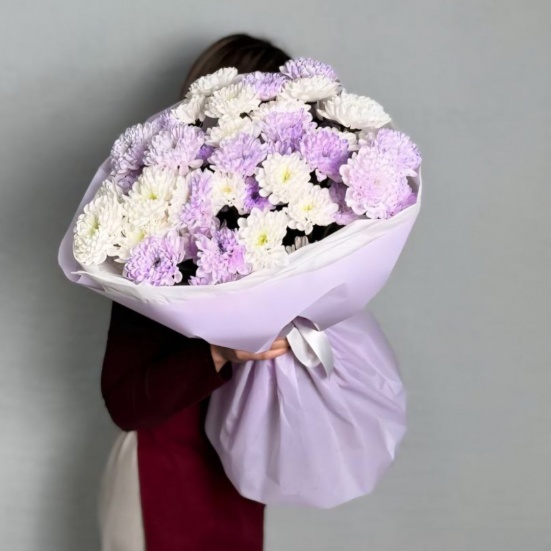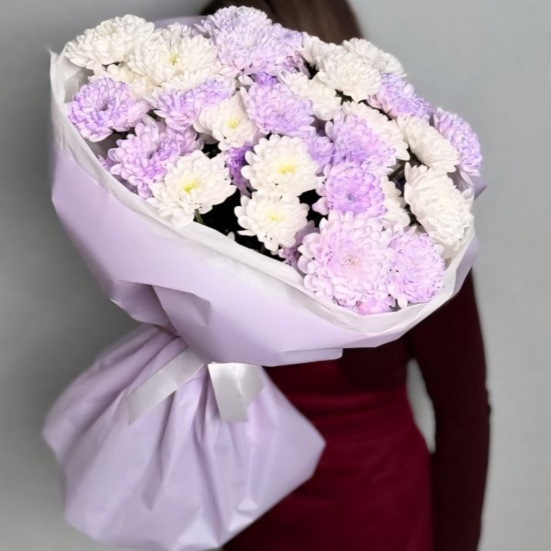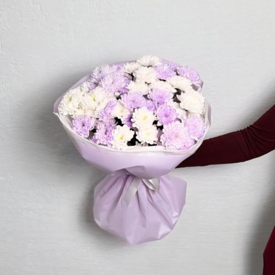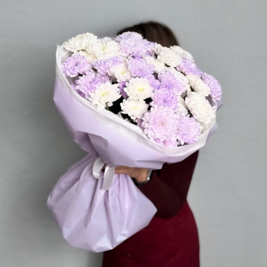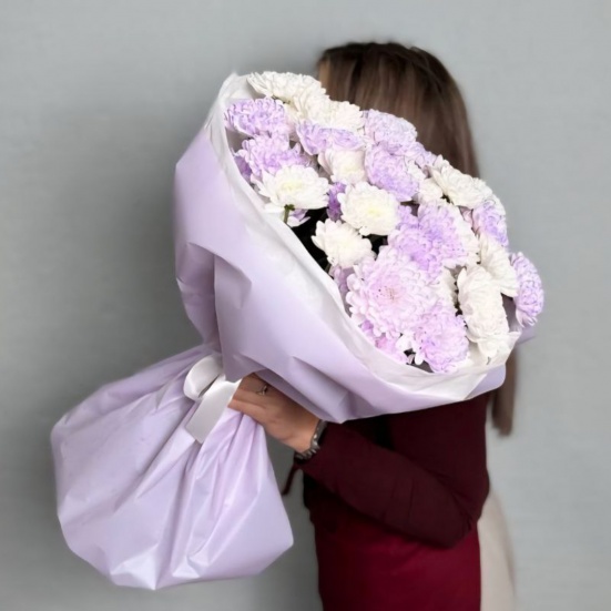 Букет из 9 фиолетовых и белых хризантем в Железнодорожном