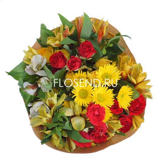 Букет из хризантем и кустовой розы и альстромерий в Железнодорожном